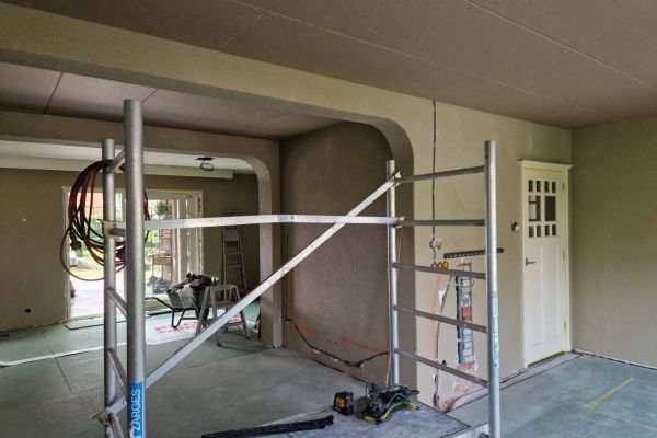 Verbouwing woonkamer met muurdoorbraak te Roosendaal