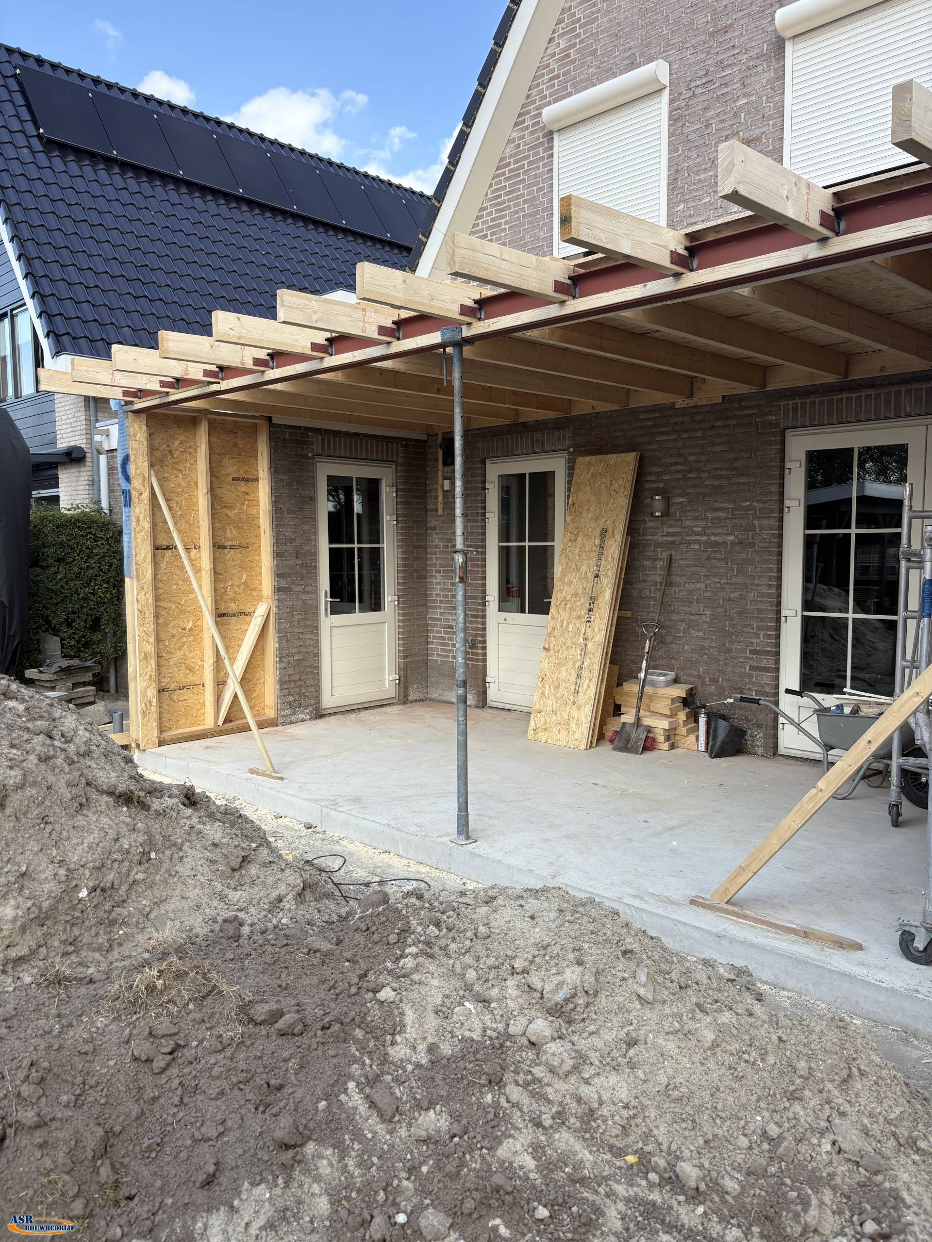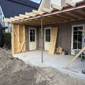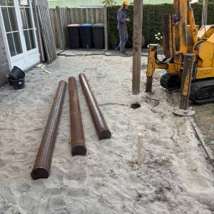 Onlangs zijn we begonnen met het plaatsen van een aanbouw aan een woning in Kruisland. Inmiddels hebben we stalenbuis palen aangebracht.