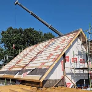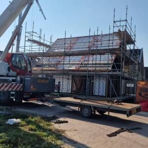 Een tijdje geleden zijn we gestart met een nieuwbouw woning in Hoeven. Onlangs hebben we daar de prefab kap geplaatst.