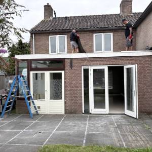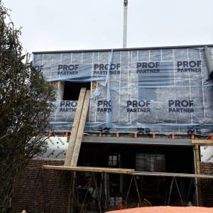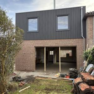 Update: Inmiddels zijn we begonnen met de werkzaamheden binnen in de woning. Aan de opbouw is de gevelbekleding aangebracht en de kozijnen geplaatst.