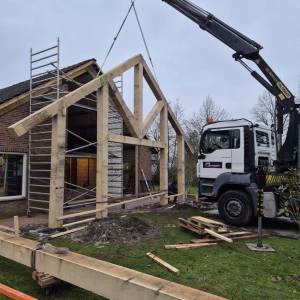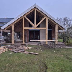 Recent gestart aan een nieuw project. Het aanpassen van de achtergevel van de garage inclusief overkapping bij een woning in Ulvenhout.