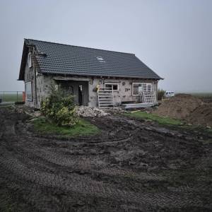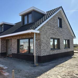 Inmiddels zijn we al een heel eind op weg. Al het metselwerk is gereed, kozijnen zijn geplaatst, dakpannen zijn gelegd en de dakkapellen zijn gezet. Onlangs zijn we gestart met het stucwerk binnen.