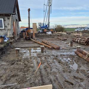 Gestart met het metselwerk aan de woning en de nieuwe garage. Ook zijn de stelkozijnen geplaatst en de sparingen gemaakt ter voorbereiding op het plaatsen van de rolluiken.