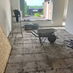 Onlangs zijn we gestart met een mooie binnen verbouwing aan een woning in Ossendrecht in samenwerking met Jobse Groep. Inmiddels zijn we begonnen met het maken van een mooie tv wand en is de gehele tegelvloer verwijderd.