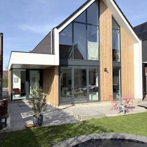 Onlangs hebben we dit mooie project mogen opleveren, op de foto’s het eindresultaat van de nieuw aangebrachte gevelbekleding aan de voor en achterkant van de woning.